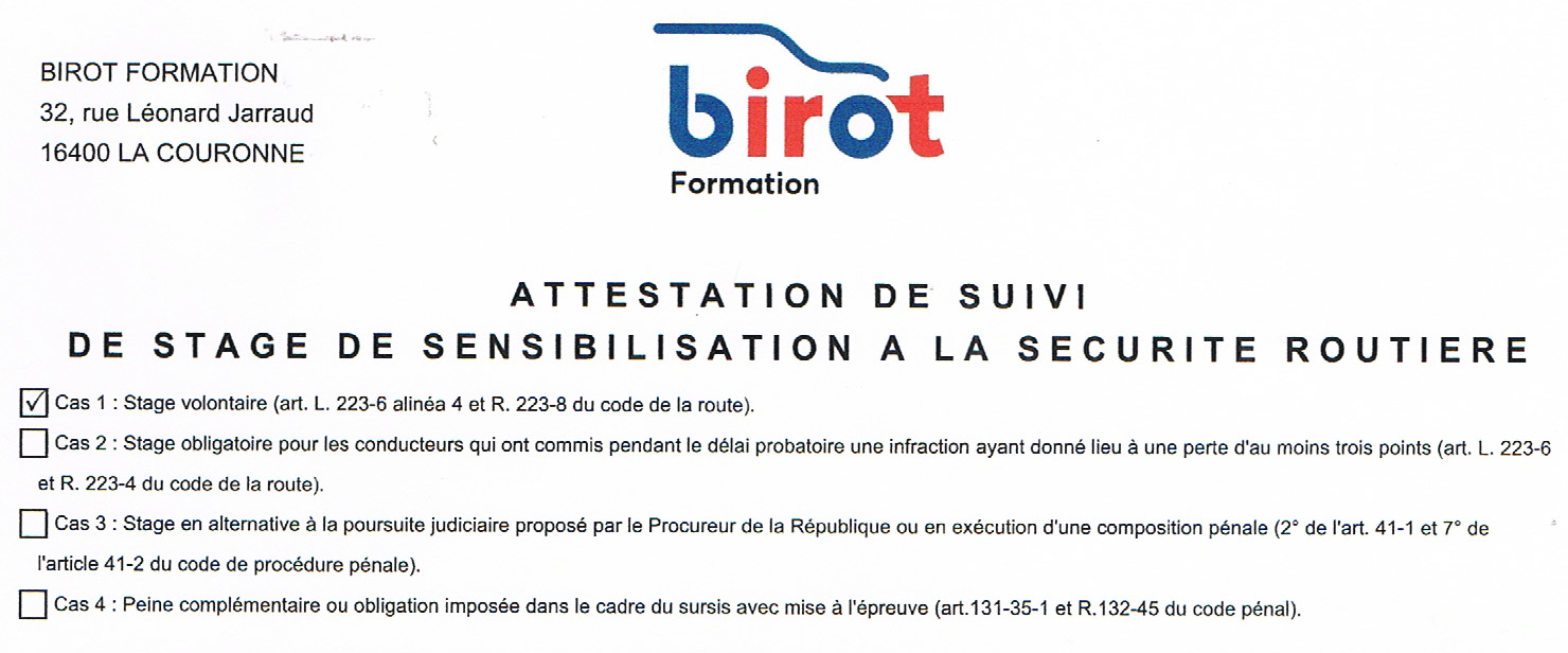 Stage de récupération de points 08/09 janvier 2024 > Accueil & ambiance super sympas, intervenants de qualité cordiaux et conviviaux. Je recommande ! En prime, le café est offert (LOL)... Une attestation vous est remise à l'issue du stage. Il est préférable d'aller s'inscrire directement à l'auto-école, vous éviterez ainsi les frais prélevés par certains sites, et qui peuvent s'avérer significatifs !