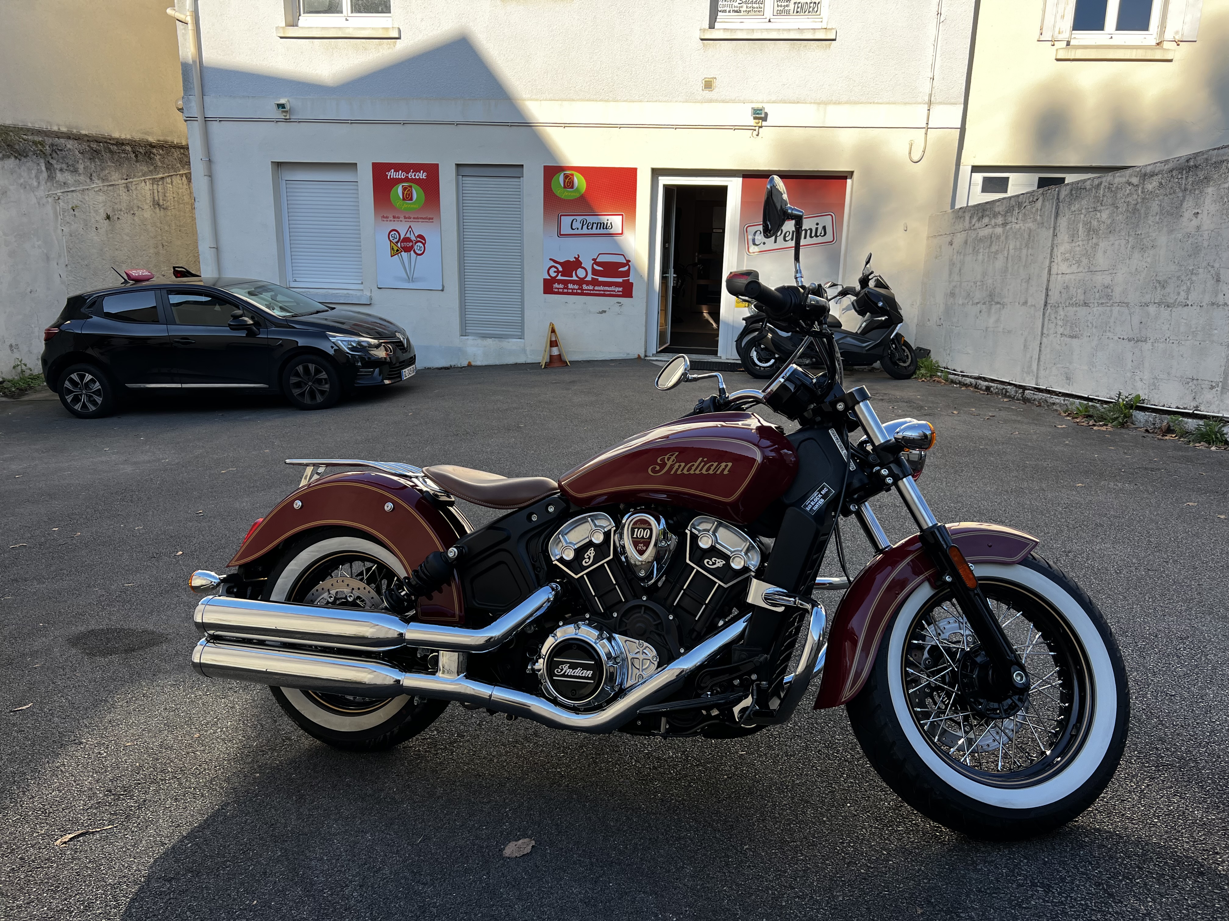 Salut bande de futur(e)s motard(e)s Aujourd’hui 07 novembre 2023 , voilà 2 mois que j’ai acquis le précieux sésame. Grâce à qui ? … A une super équipe d’auto ecole !!!! Merci à Manu Antho et Louane, pour les conseils et l’organisation en back office. Merci à tous les autres membres de cette auto ecole pour l’accueil et le partage Alors ? Vous aussi ? Vous êtes inscrit(e) à C PERMIS ? À bientôt sur les routes ✌️✌️✌️ François « P’tit Beurre » et son inséparable Indian Scout 100eme anniversaire