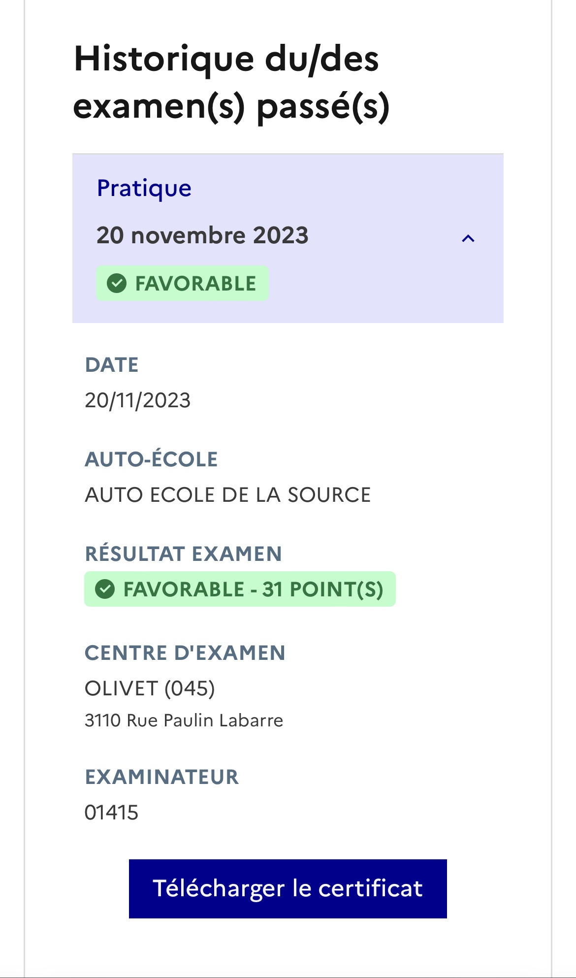 Je recommande cette auto- école pour la qualité du suivi ainsi que l'amabilité et la cordialité de toute l'équipe. Ce très bon accompagnement m'a permis de passer mon code, la conduite accompagnée puis mon permis de conduire (et d'avoir mon code et mon permis dès le premier examen) !