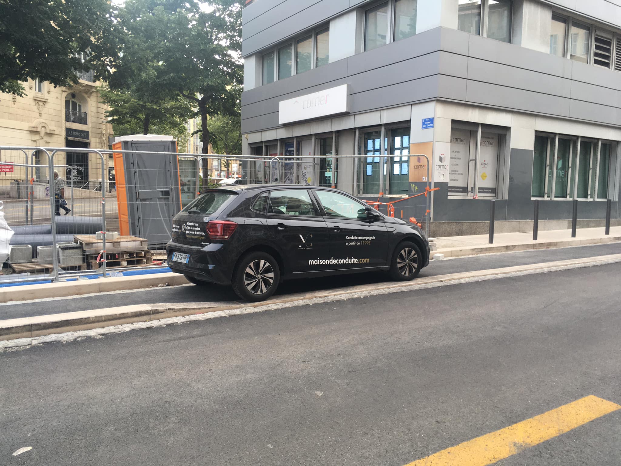 Auto-Ecole inconscient. Qui met la vie des cycliste en danger. Vous pouvez garer votre voiture ailleurs que sur la piste cyclable. Vous devriez montrer l'exemple en appliquant le code la route que vous enseigné
