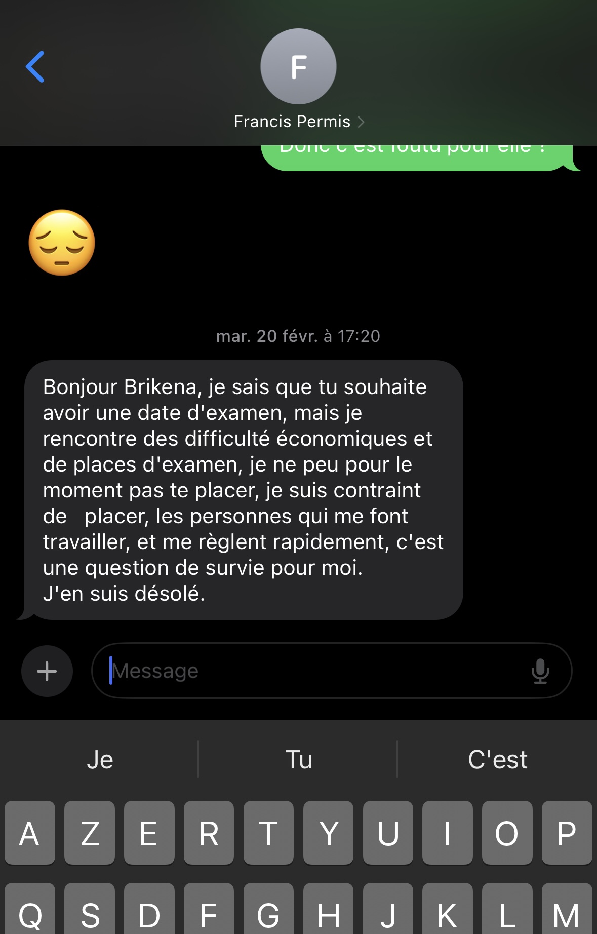 Merci Francis pour ta gentillesse et ta patience avec moi parce que j'ai pas été un élève facile. Permis en poche depuis le 2 mai boite auto. Tu avais toujours les mots juste pour me faire comprendre mes erreurs et surtout me dire TU ES CAPABLE . Merci pour tout et continuer de converser avec tes élèves pendant les cours 👍🏽. Bonne continuation Je recommande à 100% .