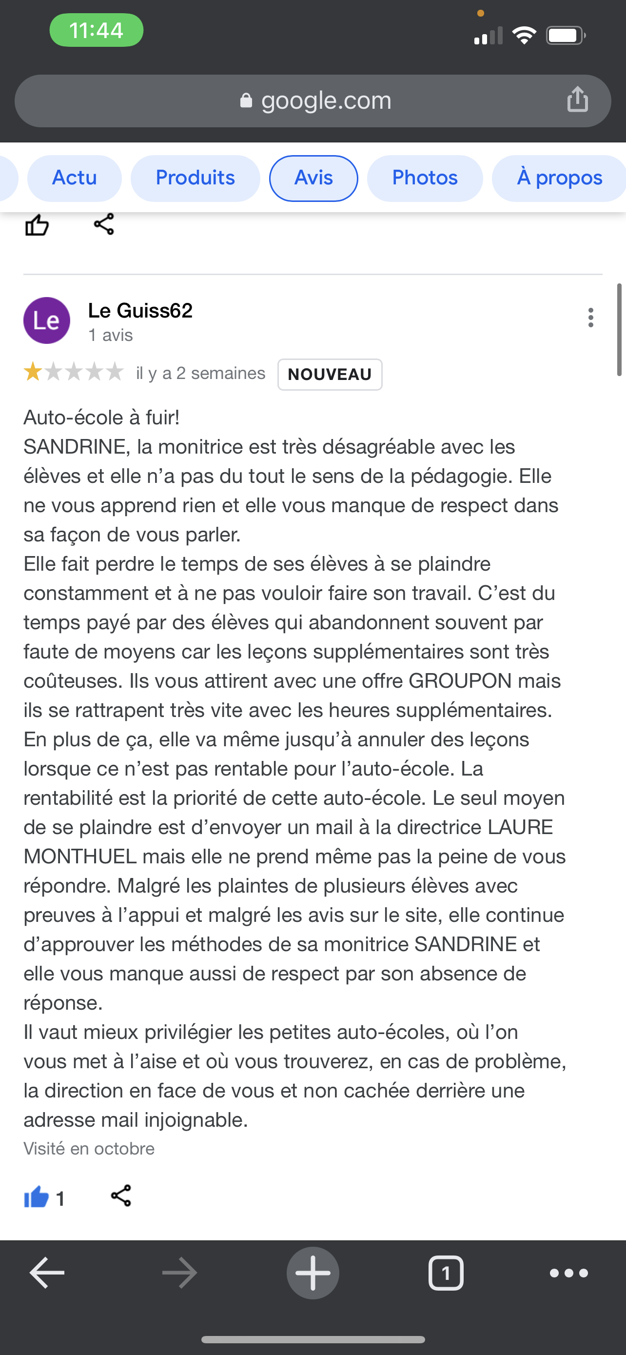 auto école à fuir !!!! Monitrice très irrespectueuse qui insulte ses élèves, qui se moque quand on se trompe, aucune pédagogie, aucune professionnalisme, pour l’auto école de La Bassée et de Lens, pour un permis moto qui n’a jamais abouti et aucun remboursement possible ! Car surtout faite très attention dans le contrat ne signez pas si il est stipulé : heure de conduite 0,00€ (Car d’après eux si vous réaliser les heures de plateau et que vous voulez arrêter votre permis car vu le manque de respect de la monitrice vous allez vouloir partir de cette auto école de fou bah ils partent du principe qu’ils vous offre les heures de conduite en ville donc aucune remboursement) 🤣🤣🤣 alors que vous tout payer ! 10€ pour une oreillette que j’ai jamais vu et jamais utilisé mais pas de remboursement, On leur dit que nous sommes pas prêt à passer l’examen on nous dit que ce n’est pas leur problème que maintenant j’ai une date et que j’irais à l’examen ou dans tout les cas sa sera compté ! Envoi des dizaines de mail, courrier recommandé et aucune réponse, durant les heures de conduite (troc et échange de légumes entre les moniteurs), 2h de conduite = 1h de conduite car le temps que madame décharges les motos, dénigre un élève puis l’autre puis l’autre, se plaint de ses conditions de travail, et le troc entre les moniteurs sur le parking, nous avons qu’une heure de conduite. Enfin franchement je vous déconseille complètement cette auto école qui n’est pas sérieuse, et pas professionnel ! Au moindre problème aucune médiation possible. A fuir !!!!!! A part ça ce n’est pas vrai ? La preuve en photo je ne suis pas le seul à me plaindre de cette monitrice mais la direction ferme les yeux !!