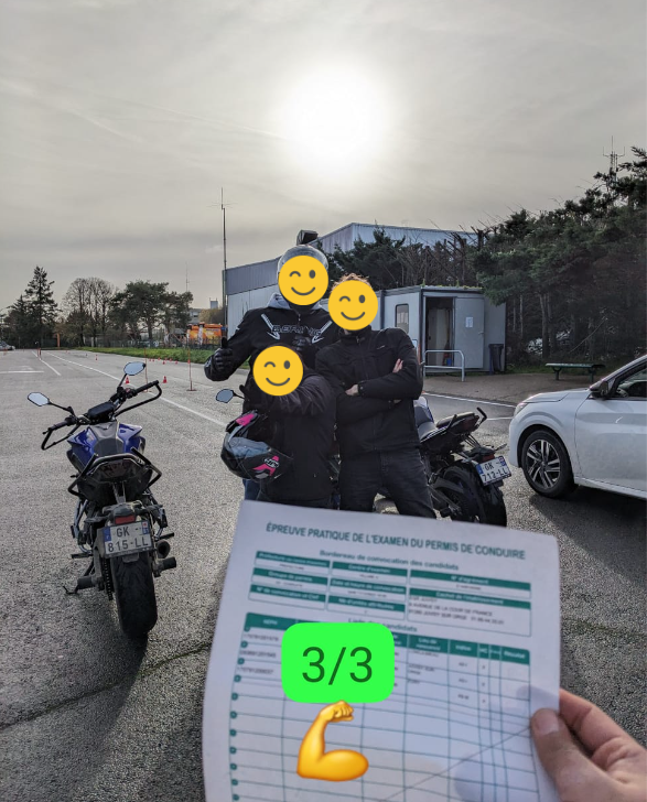 Mon mari a passé son permis moto A2, ça c'est très bien passé. Merci à Ahmed, Mey, Dylan, Ali.