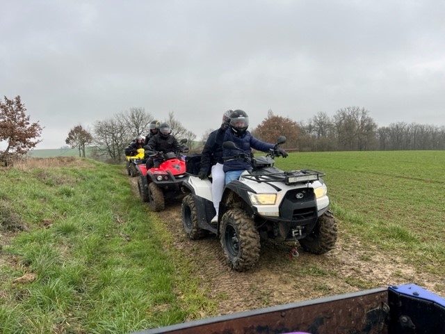 Après midi Quad (3heures) avec un un bon prof parcours avec de jolies vue sur le Gers et ponctué d arrêts culturels et d anecdotes. Parcours diversifié entre chemins , franchissements ...bref un excellent après midi au coté de Franck .