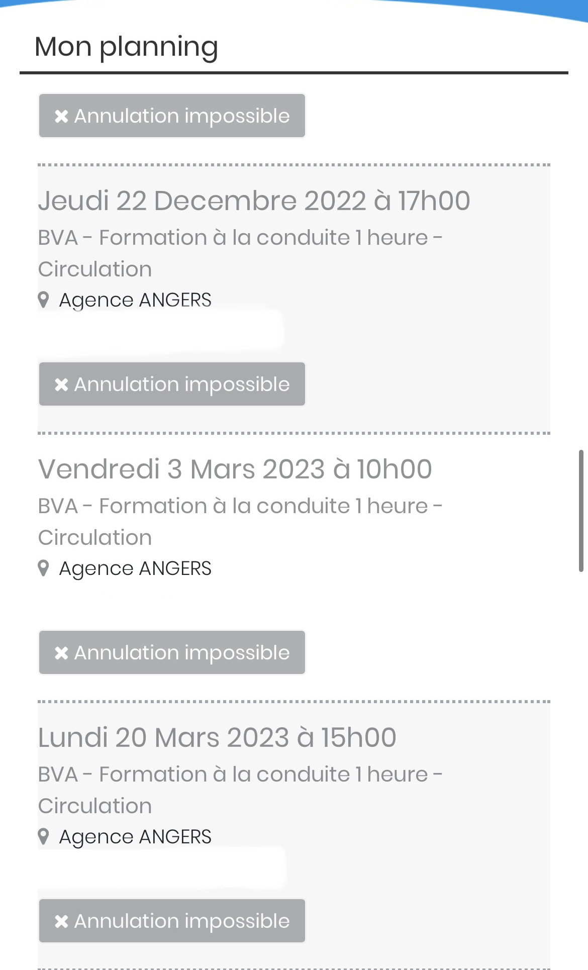 ATTENTION VOLEURS J’ai payé un forfait chez eux , de 13h de conduite pour un permis boîte auto. Je leur ai envoyé un courrier en recommandé en leur disant que j’avais déménagé … regardez bien les avis je ne suis pas la seule. Sachant que je leur ai quand même payé des frais d’ouverture de dossier et de code que je n’ai pas effectué chez eux (donc benef pour eux) mais ils ont répondu aux absents quant aux 13h de conduitee payées non effectuées ! Ils font l’autruche , je ne vous les conseille pas . En plus de ça, ils ne vous donnent absolument aucune trace écrite , s’efforcent d’effacer votre espace client dès que vous leur posez la moindre question. Ils sont malhonnêtes ! Merci pour votre réponse. J’ai obtenu mon code , là n’est pas le problème , je parle des 13h de conduites payées ! Plutôt que de supprimer mon dossier, vous auriez pu logiquement me proposer un avoir ou un remboursement ? Faites preuve de bonne foi et ne déplacez pas le problème.