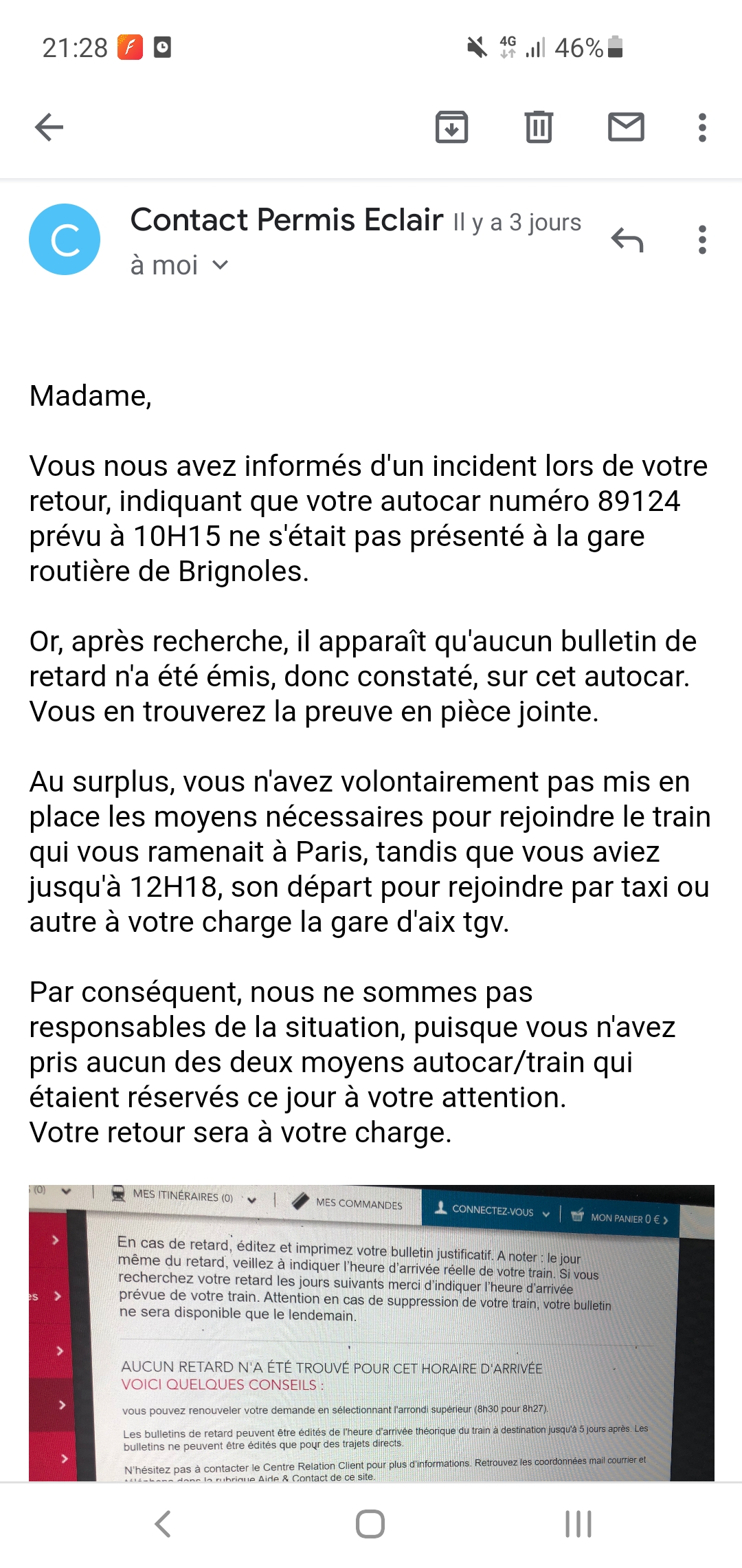 Ma petite fille a réussi à avoir son permis de conduire du premier coup Grâce à L'auto École de Châteauroux Mr Gabriel ,un Mr très professionnel. Au début on arrivait à avoir permis eclair au téléphone,une fois qu'on avait versé 2700€. On s'est retrouvé dans un hôtel (de la gare) à Châteauroux. Je me passe des explications .A voire mon message sur TripAdvisor. On a été obligé de se retrouver un hôtel pour pouvoir se reloger. (Bien plus honereux) Entre le permis les repas plus l'hôtel cela m'est revenu à 5500€, un peu cher non?? Je demande juste à permis Eclair de rembourser les frais de l'hôtel de la gare à ma petite fille . Je leur ai même fourni le mail que j'ai reçu de la directrice de l'office du tourisme de Châteauroux . Je vous trouve pas très honnête et croyez moi que si j'avais su je serai allée ailleurs que chez vous .... Mme kostrzewski