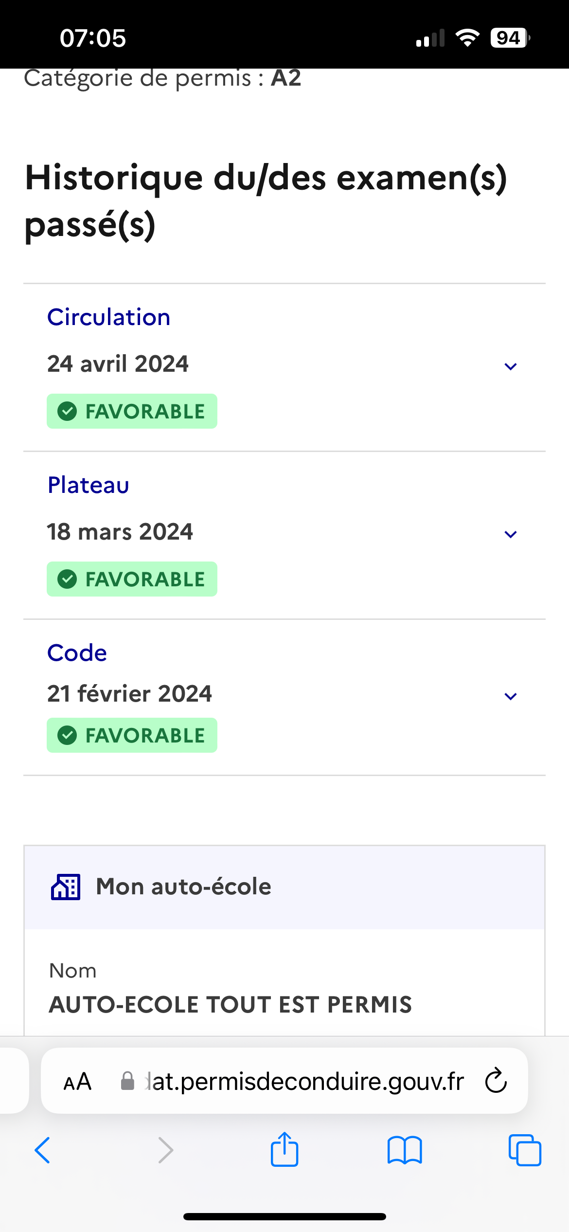 Permis A2 en poche grâce à l'auto-école Tout Est Permis Super équipe, je recommande !